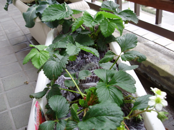 生き残れなかった株は引っこ抜いて、空いたスペースの土をほぐし石灰を入れ肥料を入れて数日養生したあと、別の種類のイチゴを植えた。今年はスーパーのビニール袋を切り開いたものでマルチングしてみる。早速花がどんどん咲いているので、収穫に期待だ。たぶんGWごろに食べごろだろう。